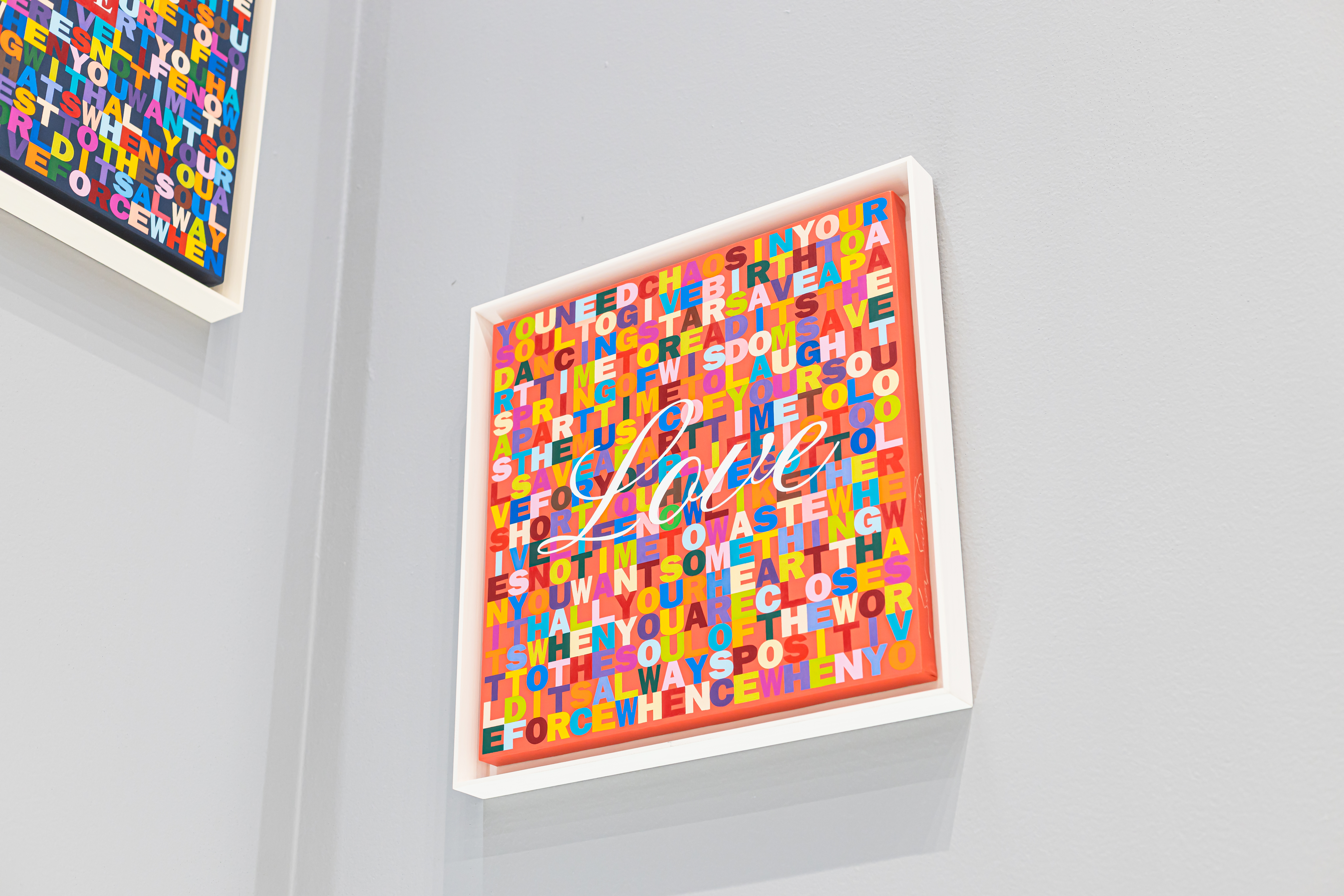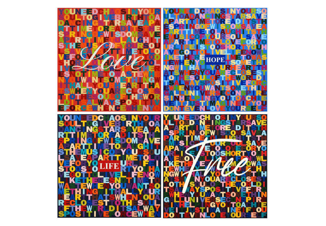 이 캔버스에는 "아름다운 눈을 갖고 싶으면 다른 사람들에게서 좋은 점을 보아라. 아름다운 입술을 갖고 싶으면 친절한 말을 하라"는 오드리 햅번의 명언이 담겨 있습니다. 커다란 캔버스 위 가득 새겨진 글자들은 단순한 텍스트를 넘어서 말이 주는 힘과 그 시각적 울림의 결합체라 할 수 있습니다.