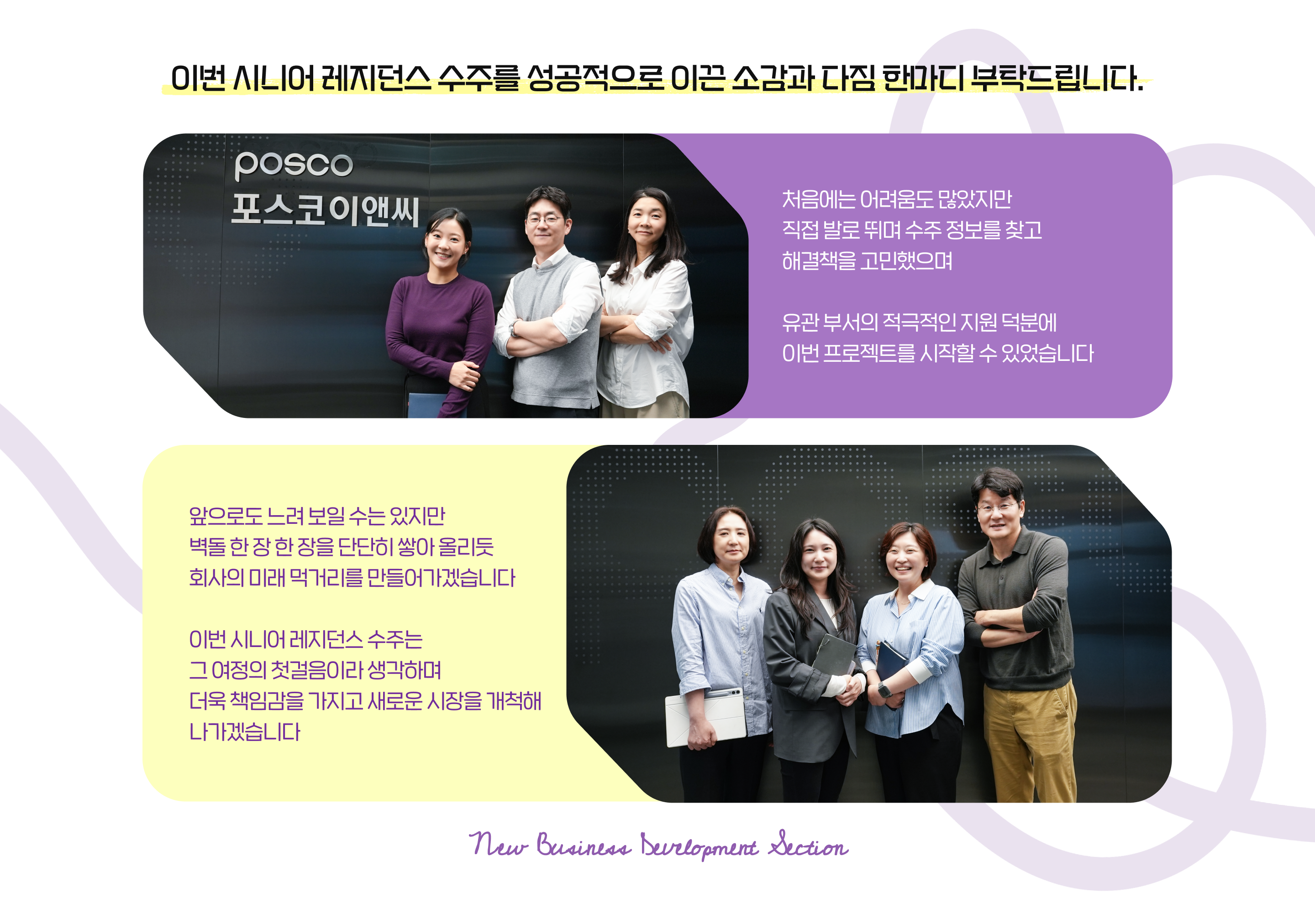 이러한 시대적 변화 속에서, 포스코이앤씨가 '한남동 730 시니어 레지던스'를 선보입니다. 고령사회를 향한 새로운 해답이자, 행복한 시니어 라이프를 설계하는 포스코이앤씨의 첫 도전이죠. 한남동 730 시니어 레지던스의 수주 비하인드 스토리와 미래 주거 패러다임을 만들어가는 신사업개발섹션의 이야기를 만나보세요.