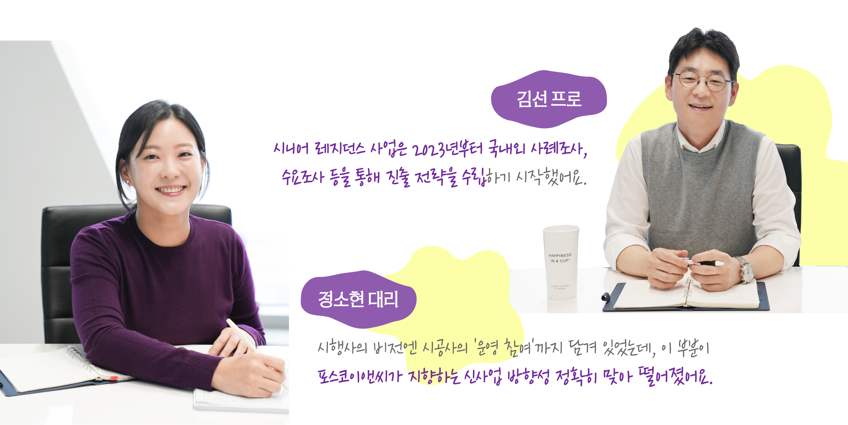 정소현 대리: 시니어 레지던스는 노인복지시설 중 노인복지주택에 해당돼 일부 인구 감소지역을 제외하곤 분양이 불가능합니다. 그래서 이번 사업은 회사가 직접 임대사업으로 운영하면서 운영 수익과 매각 차익을 실현하는 수익 구조로 추진했어요. 초고령사회로 진입한 올해, 우리 회사가 노인복지주택의 시공과 운영에 첫발을 내딛은 상징적인 프로젝트입니다.